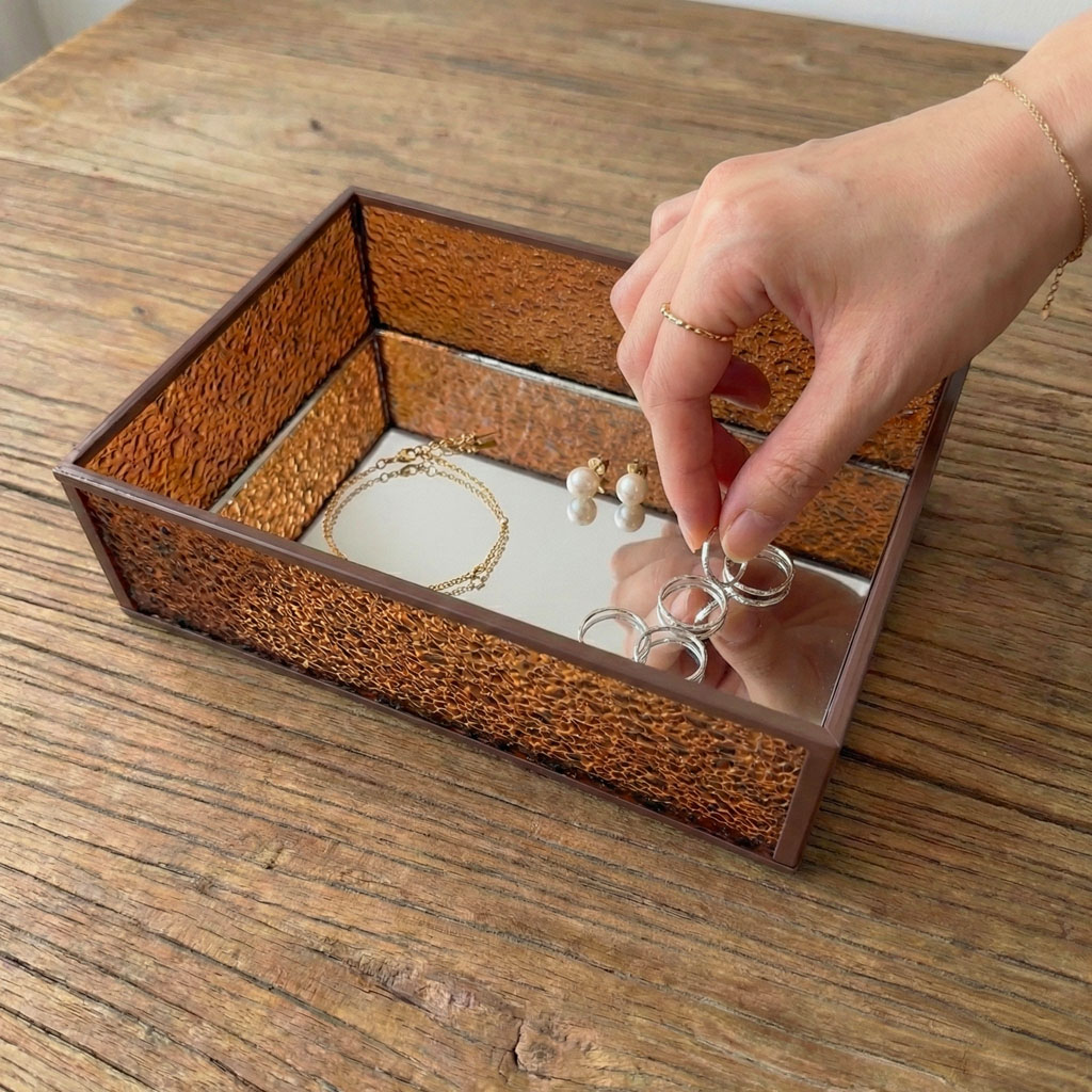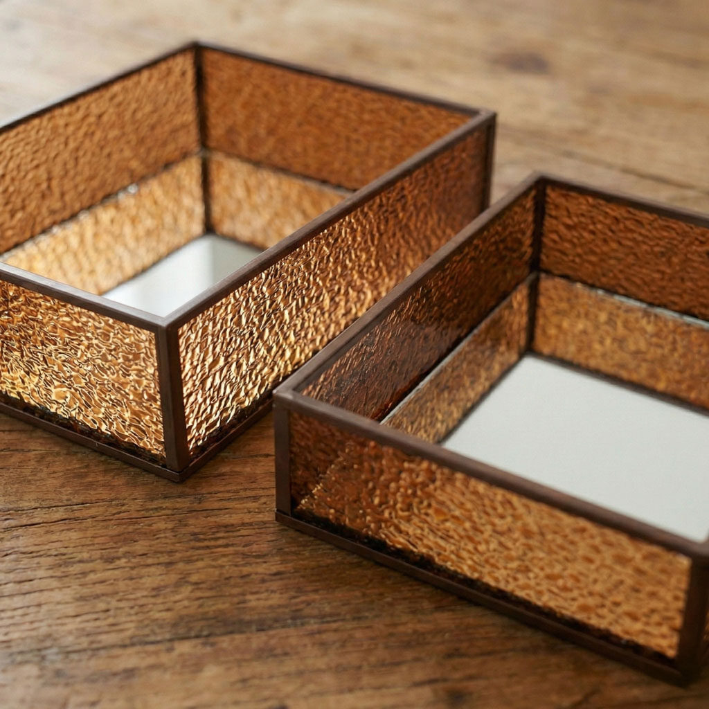 Classic Organization with Mirror Reflection. This elegant nesting set includes two rectangular trays (Large & Small) designed to bring order and luxury to your space. Featuring high-definition mirrored bases and handcrafted metal frames, these trays are perfect for organizing perfumes, jewelry, or office essentials while creating a stunning visual display.