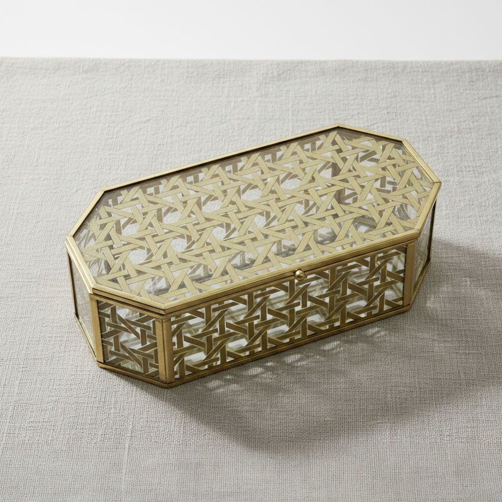 Octagonal Glass Jewelry Box with Mesh Silk-Screen Print – Gold Metal Keepsake Chest